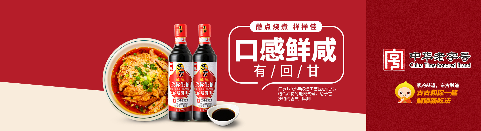 百年傳承,東古釀造,東古積攢著傳統的味道,用最傳統的釀造工藝保留著最原始的鮮美。